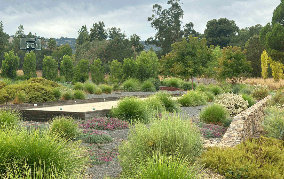 This large site in Sonoma combines lush plantings with plenty of recreational