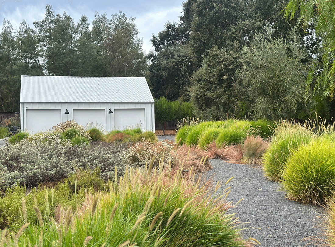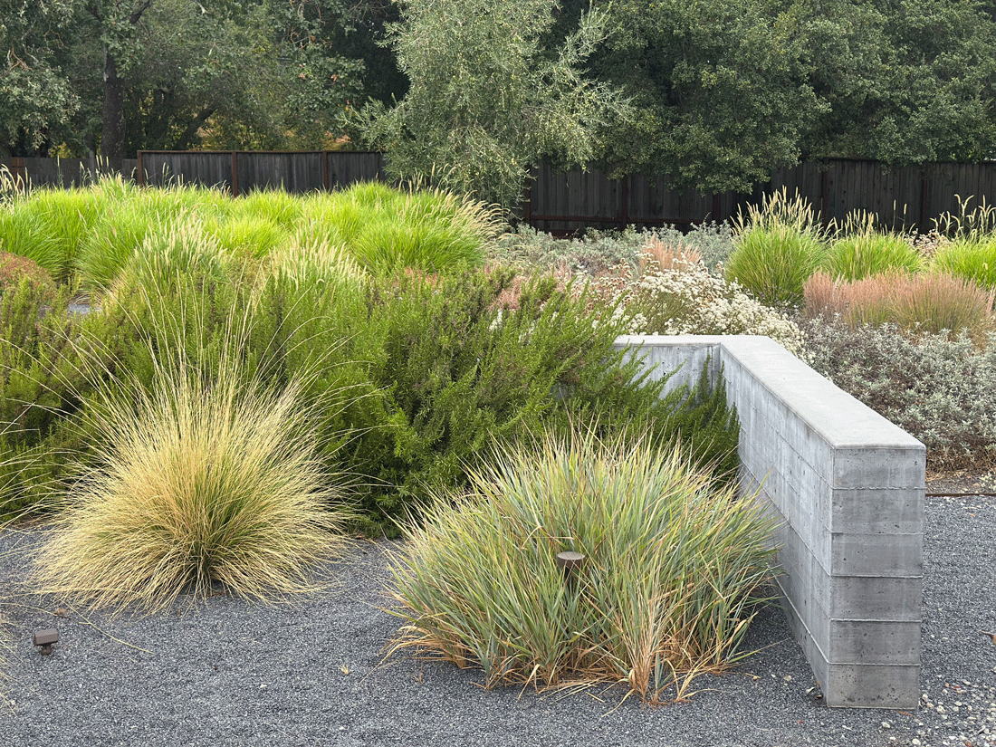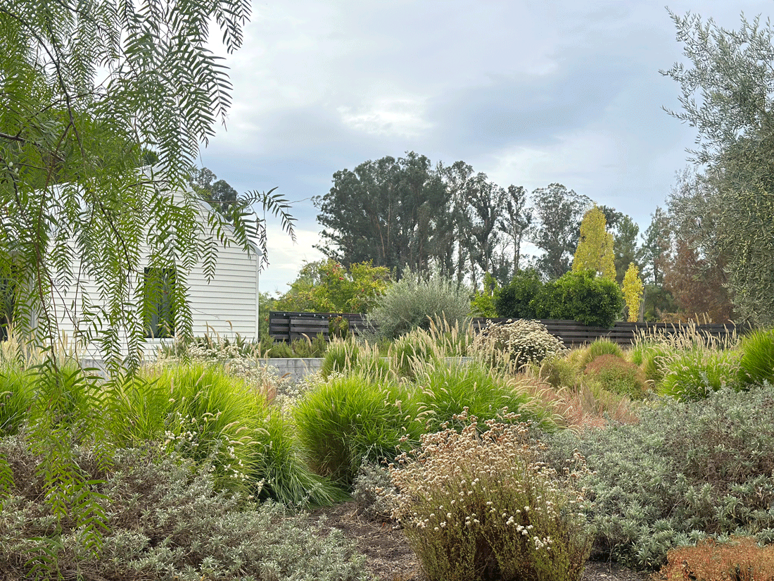 views of the hills beyond the property. The soft plant textures contrast nicely with the